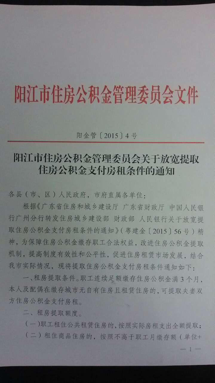 陽江市住房公積金管理委員會關(guān)于放寬提取住房公積金支付房租條件的通知